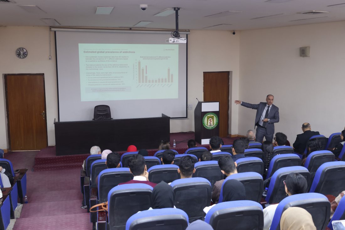 محاضرة علمية في كلية طب المستنصرية لطلبة المرحلة الأولى حول التغيرات العصبية في إدمان المخ*د*رات